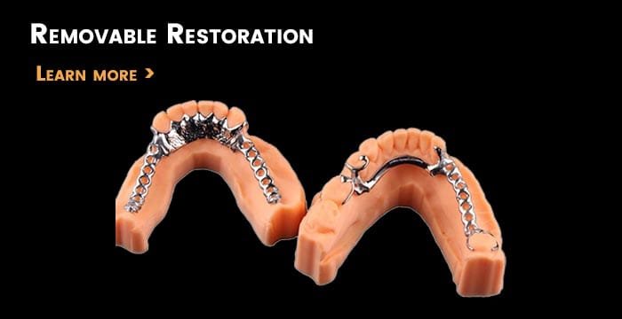 We cover all types of work from fixed to removable restoration, like crown and bridge, veneer, implant all on, partial and denture, and mouth guard so on…… Our material are all from top brands e.g Ivolcar for Emax, Argent for alloy, Vita for porcelian, Dentslply for acrylic denture.